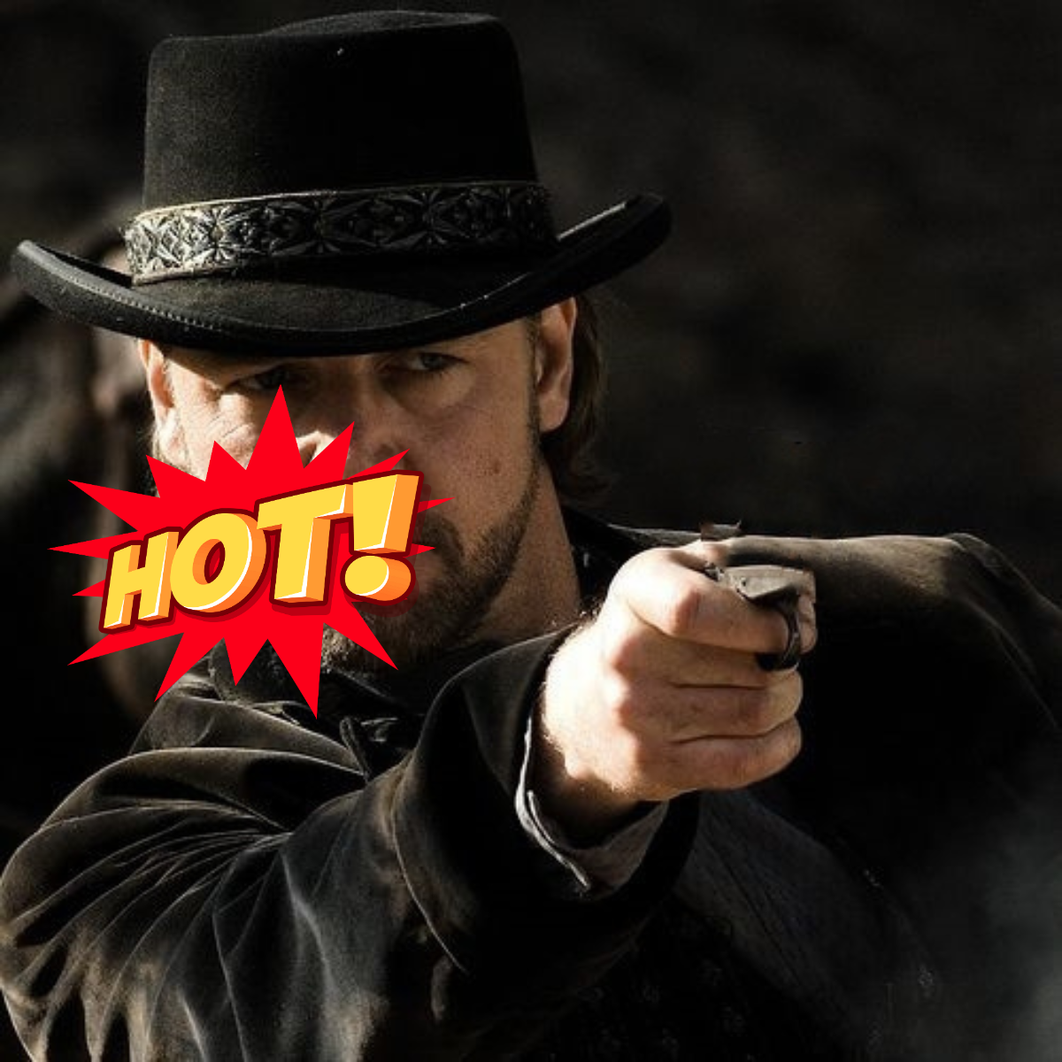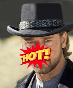 Russell Crowe as Ben Wade in the new version of 3:10 to Yuma wore a very common style in the 1860’s to 1880’s except that he had a unique hat band. The low telescope crown and smallish brim was even worn by many confederate troops in the civil war. But, I must say that it never looked so good as with this unique band and worn by Russell Crowe. In 3:10 to Yuma Russell Crowe played a very serious and a very bad guy (with a spark of good) and his hat worked very well to reinforce that character. If you haven’t seen the new 3:10 to Yuma yet, you should. It’s a very good story and Russell Crowe really delivered for us in his portrayal of Ben Wade.
