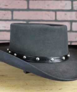 We are proud to replicate this iconic hat in the best materials available. Like all our hats this replica is handmade in wool felt. The leather used for the hatband is hand cut, dyed, and tooled to match the original. To further authenticate this look.