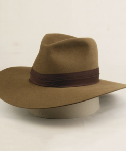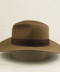 Inspired by a classic adventure character, this hat is a stylish replica of a timeless design. Made from whiskey wool felt, it features a 5 1/2″ open crown with a center crease and medium pinches for a sophisticated look. The dark brown hand-wrapped puggaree band adds an elegant touch, while the 4″ safari-style brim offers both shade and flair. Perfect for those who appreciate vintage-inspired headwear.