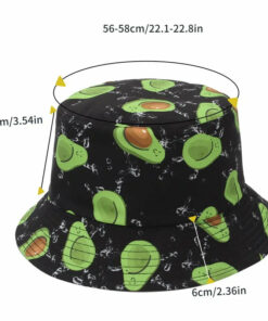 The avocado design adds a fun and quirky touch to the hat, making it a standout accessory for any outfit. The bucket hat style offers ample coverage and sun protection, making it ideal for outdoor activities or leisurely strolls under the sun.