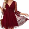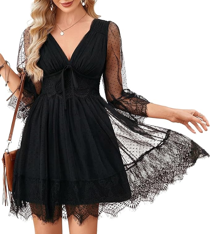 - ROMANTIC BOHO STYLE: Radiate free-spirited vibes in this deep v-neck mini dress. Featuring chic 3/4 flare sleeves and lace mesh patchwork, it creates a stunning fairycore or western-style perfect for summer photos and dates