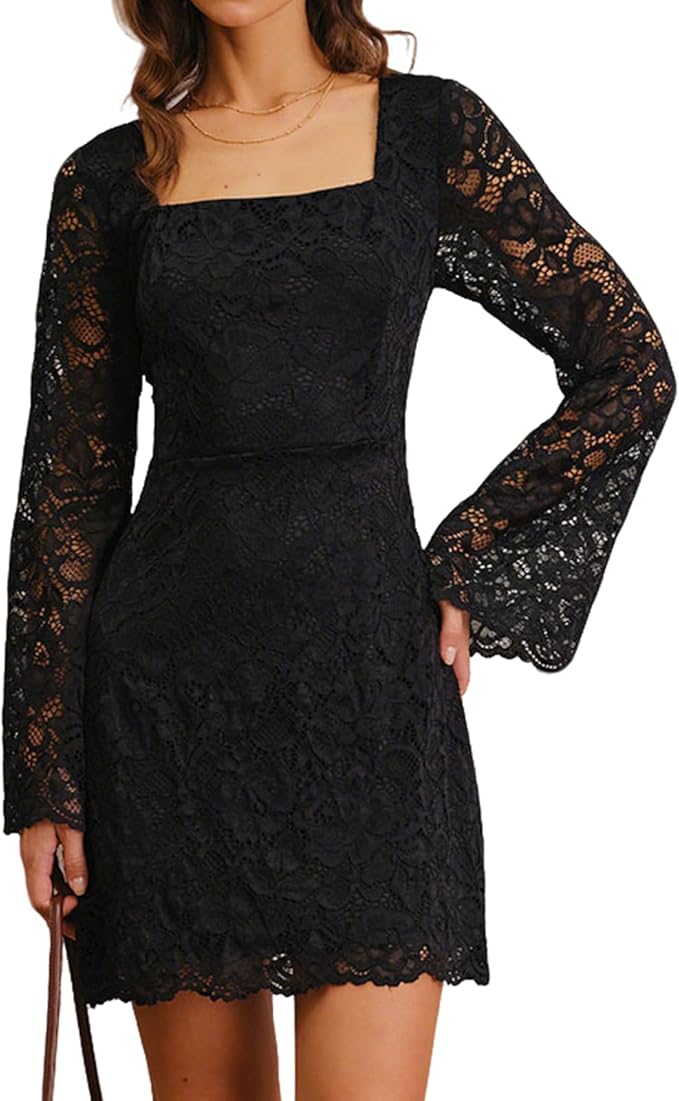 - Vintage Romantic Design:Classic square neckline highlights your collarbone, while flared lace sleeves add a retro, feminine touch and subtly cover arms.