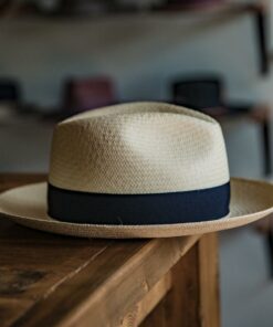 Casual Chic Straw Hat, This is a medium height centre dent panama with 7 cm / 2.75 in – 8 cm / 3.15 in brim. It features 38 mm puggaree hatband.