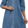 - Denim Dress Features: button down, 3/4 sleeve, puff sleeve, turn down collar, elastic cuffs, A-line, swing, tiered, midi length, lightweight, denim shirt dress for women