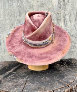 “Distressed Fedora Adorned With Scarf Feather And Rope” is hand-distressed, hand-dyed, and hand-torched, ensuring no two share the same color or design. Each piece is uniquely imperfect, with subtle variations from product images.