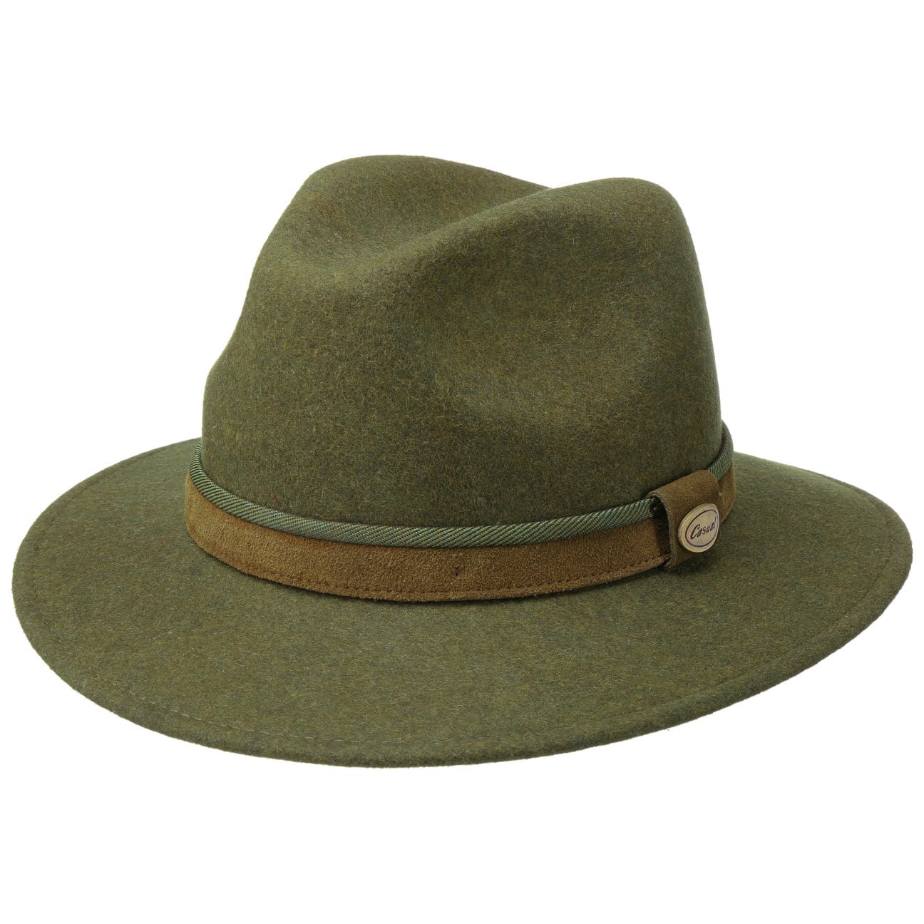 The delightful combination of wool and leather characterises the high-quality look of the Italian-made traveller hat. Different shades of colour emphasised the different surfaces of the two natural materials. The wool felt from which the hat is made wins you over with high comfort and reliable weather protection.