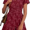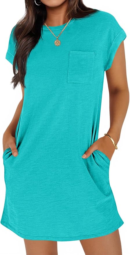 - Feature: Basic summer mini dress with floral, short cap sleeve, crewneck, loose fit, one chest pocket and two side pockets, solid color, comfortable and timeless