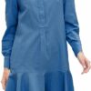 - Denim Dress Features: button down, 3/4 sleeve, puff sleeve, turn down collar, elastic cuffs, A-line, swing, tiered, midi length, lightweight, denim shirt dress for women