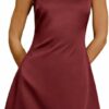 - 【Stylish Occasion Wear】This Wine Red Satin Cowl Neck Backless Mini Dress is perfect for parties, cocktails, date nights or formal occasions. The cowl neck and backless design add a chic touch, making you stand out in any special event. Crafted from polyester, it offers a luxurious satin look that suits women like students, white-collars and unmarried ladies for various social gatherings.