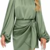 - MATERIAL: Womens Elegant Short Satin Dress Made Of Selected Satin Material, Light Weight And Comfortable. Long Sleeve Formal Satin Dresses For Women With Non-Stretch Fabric, Silky Smooth To Wear And Looks Striking, Flattering And Textured.