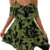 - Features: Flower pattern, spaghetti strap, flared a line, ruffle hem, cut out shoulder, short dress, flowy dresses