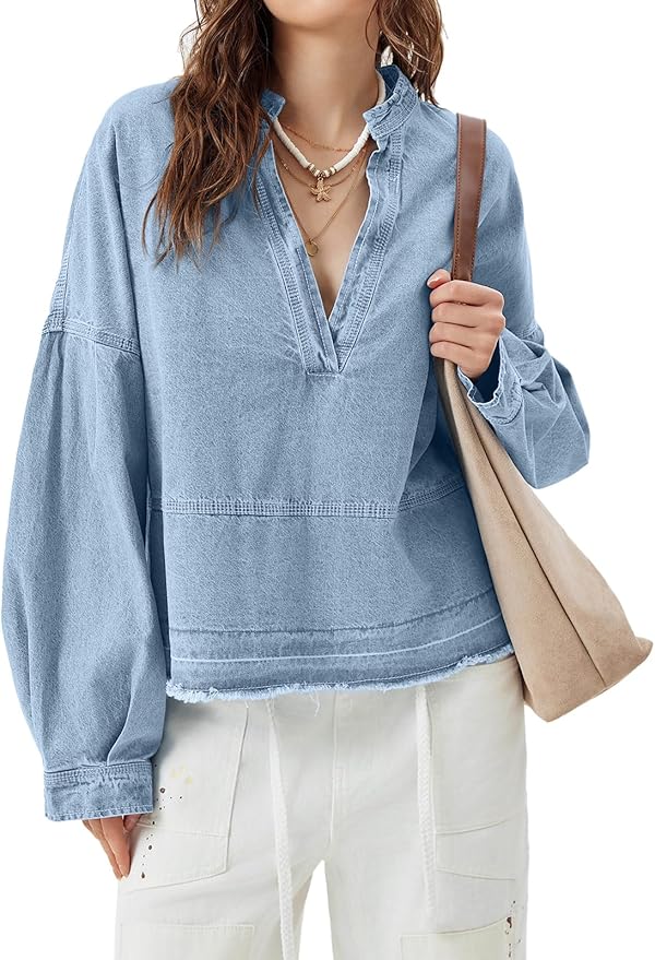 - Cotton Fabric: This womens denim pullover made by high quality 100% cotton fabric. Super comfortable, skin-friendly for women spring and fall trendy going out outfits.