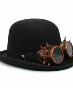 Elevate your style with our distinguished Bowler hat, featuring a unique eyeglass-adorned hatband. This timeless piece is meticulously crafted, boasting a crown height of 4.72 inches and a brim width of 1.97 inches. Whether you’re aiming for a formal or casual look, this Bowler hat is the perfect accessory to add a touch of individuality to your ensemble. The eyeglass-accented hatband adds an intriguing and sophisticated element to this classic accessory, making it a standout choice for any occasion. Make a statement and elevate your wardrobe with our impeccably designed Bowler hat.