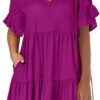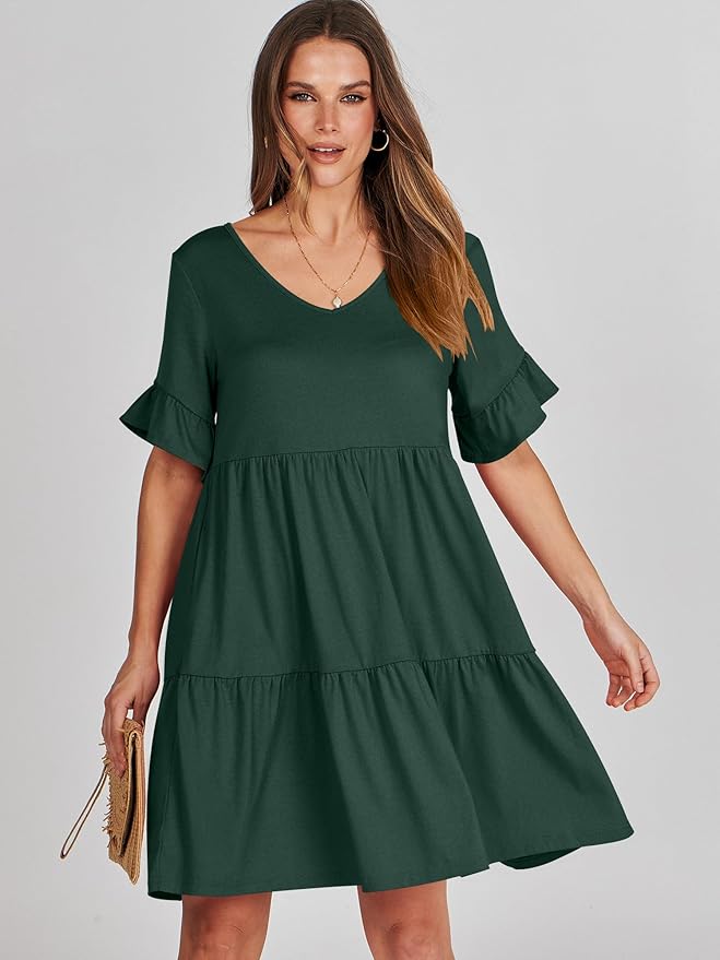 - Features – Women’s summer mini dress, v neck, ruffle short sleeve, a-line, side pockets, tiered. This women’s casual dress perfect for daily wear, beach, vacation, work.