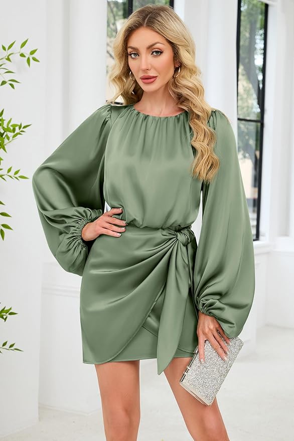 - MATERIAL: Womens Elegant Short Satin Dress Made Of Selected Satin Material, Light Weight And Comfortable. Long Sleeve Formal Satin Dresses For Women With Non-Stretch Fabric, Silky Smooth To Wear And Looks Striking, Flattering And Textured.