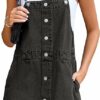 - Material: Effortlessly comfy! This cool and slouchy denim short jean dress is made of premium comfy denim fabric which is 90% cotton and 10% Polyester. It’s textured, lightweight,. keep you out of the ordinary when wearing our casual button down overall dress!